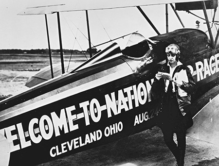 In 1929, airplanes were still considered something of a science fiction fantasy, therefore the exciting flying events were reported in newspapers around the world. The daily flying schedule included “dead stick” landing contests, glider demonstrations, Goodyear blimp flights, parachute jumping contests and military demonstrations. The Navy High Hats, a formation team formed long before the Blue Angels, created a worldwide sensation by flying with their planes tied together by one-inch ropes from wing-struts to wing struts. Even the late Charles A. Lindbergh was in the show flying a Boeing biplane. There were also closed-course pylon races and cross-country races from as far away as Log Angeles, Miami and Toronto; all timed to reach Cleveland on different days of the show. Women pilots, including the already famous Amelia Earhart, raced in a special “Powder Puff Derby” from Santa Monica, California, to Cleveland.