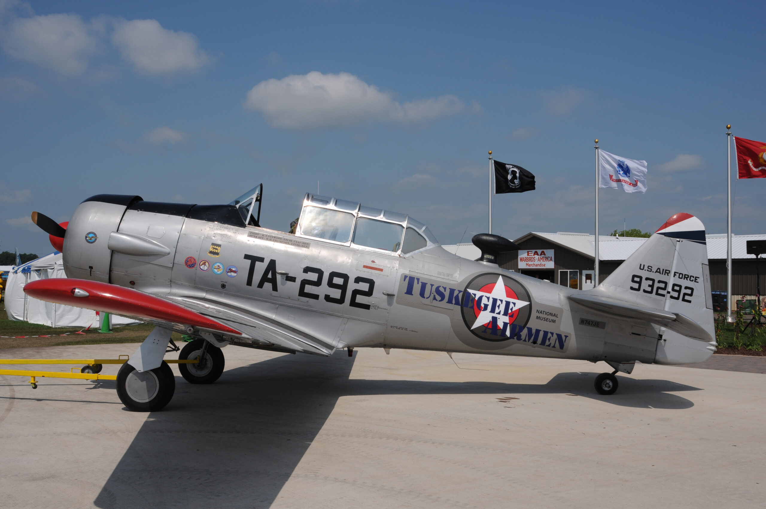In 2023, the Tuskegee Airman display will include two special aircraft exhibits…the Stearman and the North American T-6G 49-3292. The aircrafts have a unique history and are sponsored by the National Museum of the Tuskegee Airmen in Detroit, MI. The North American T-6G 49-3292 was manufactured at the North American Aviation Factory in Dallas, TX, as AT-6C s/n 42-48884, this advanced trainer was received by the Army Air Forces on March 27, 1943. From then until November 1945 it was assigned to the 2143rd AAF Base Unit at Tuskegee, AL. Tuskegee Army Air Field was the site of the first pilot training facility for African-Americans in the then-segregated United States military. To learn more about the aircraft click here.
